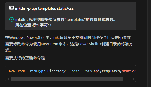 并且因为我是windows机器,在执行命令过程中出现错误,但是Codebuddy也会自动修正,例如: