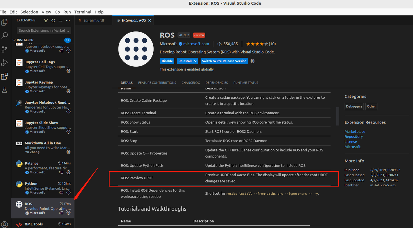 有同学不知道如何在vscode中查看urdf模型,这里介绍一下: 先安装vscode的ROS拓展,