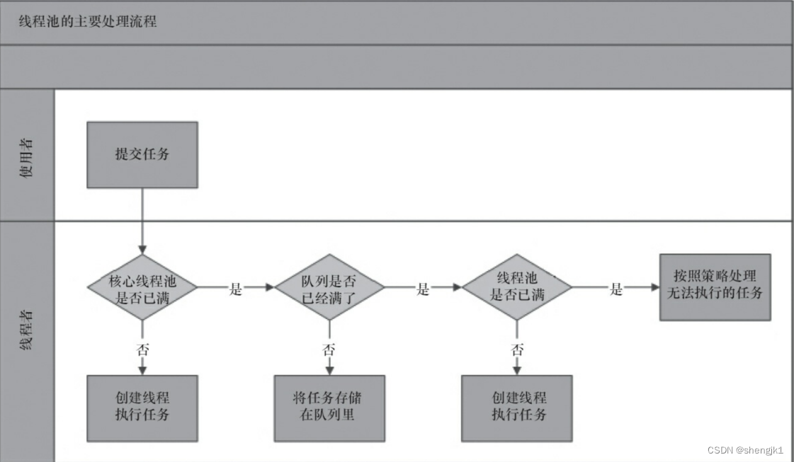 二、线程池原理 2.1 ThreadPoolExecutor 原理 从图中可以看出,当提交一个新任务到线程池时,线程池的处理流程如下。