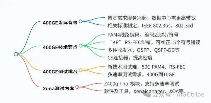 随着高清视频流、社交媒体等带宽需求大的服务兴起,数据中心对带宽需求剧增,推动了 400GE 等高速以太网标准的发展,如 IEEE 802.3bs 和 IEEE 802.3cd 。400GE 采用PAM4线路编码,并搭配“KP” RS-FEC纠错技术,同时有多种新的收发器和连接器。测试 400GE 网络设备面临诸多挑战,Teledyne LeCroy Xena 的Z400q Thor测试模块能支持多种速率测试,配合 XenaManager 等软件及多种自动化工具,可进行全面测试。