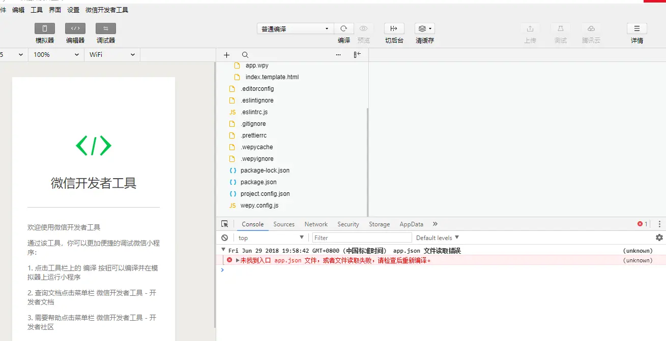 }未找到入口 app.json 文件,或者文件读取失败,请检查后重新编译。