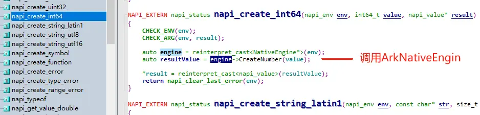 可以看到,NAPI接口本身是C++语言实现的,这些接口可以帮助C++代码创建JS变量,或访问JavaScript运行环境中的JS变量与方法。