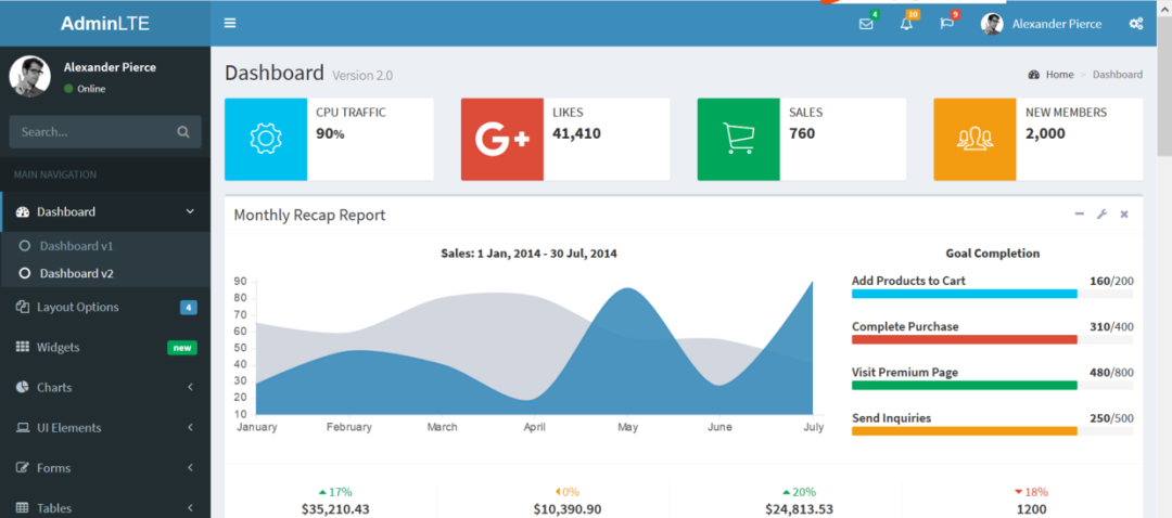 推荐指数:star:34.7k Github 地址:https://github.com/almasaeed2010/AdminLTE 预览:https://adminlte.io/themes/AdminLTE/index2.html
