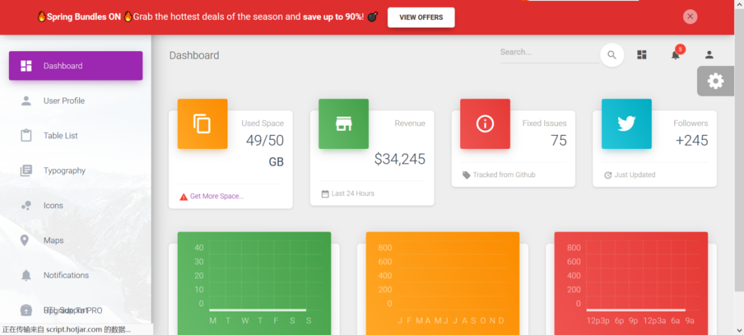 推荐指数:star:9.1k Github 地址:https://github.com/creativetimofficial/material-dashboard demo:https://demos.creative-tim.com/material-dashboard