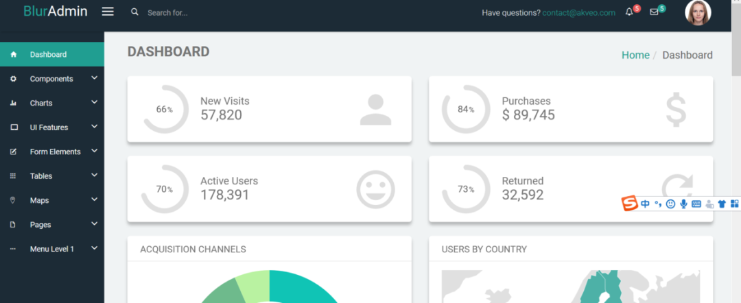 BlurAdmin 是一款使用 AngularJs + Bootstrap实现的单页管理端模版,视觉冲击极强的管理后台,各种动画效果。