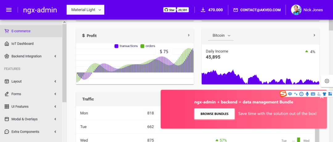 推荐指数:star:20.6k Github 地址:https://github.com/akveo/ngx-admin demo:https://www.akveo.com/ngx-admin/pages/dashboard