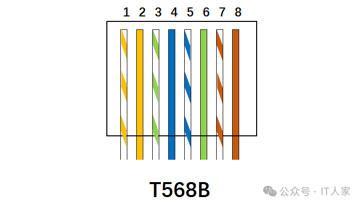 T568B线序:白橙、橙、白绿、蓝、白蓝、绿、白棕、棕