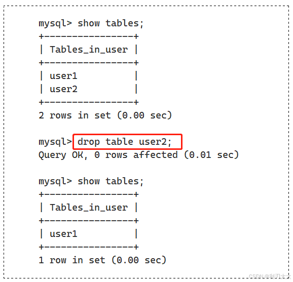 drop [temporary] table [if exists] tb_name [, tb_name, ...]