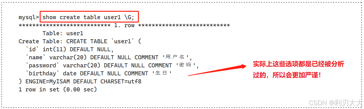 这里最值得注意就是在我们查看创建表语句的时候,原来的 comment 注释怎么没了❓❓❓