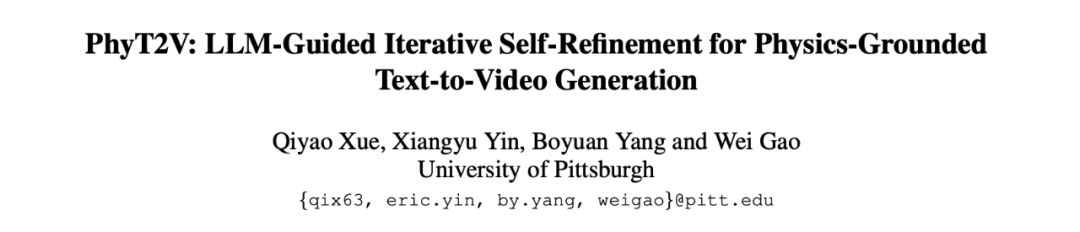 为推动物理一致性驱动的 T2V 生成研究,来自匹兹堡大学的研究团队提出了 PhyT2V 框架,并在最新论文中系统阐述了该方法的核心机制,该论文已被 CVPR 2025 接收。