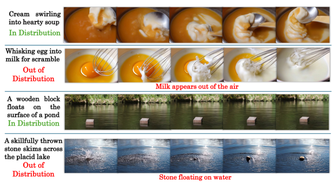 现有让 T2V 模型生成内容更符合物理规则的方法主要存在以下局限性,尤其是在处理训练数据未涵盖的分布外(out-of-distribution,OOD)场景时: