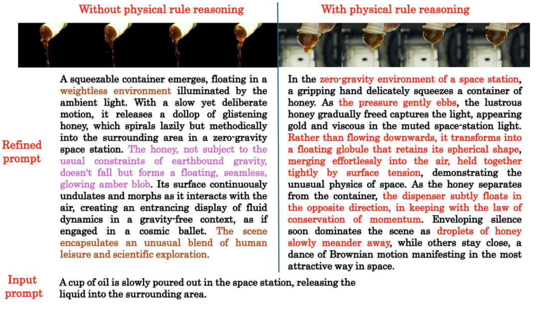 该方法不依赖模型重训练或大规模外部数据,而是通过引入大型语言模型引导的链式推理与迭代自我修正机制,对文本提示进行多轮物理一致性分析与优化,从而有效增强主流 T2V 模型在现实物理场景中的泛化与生成能力。