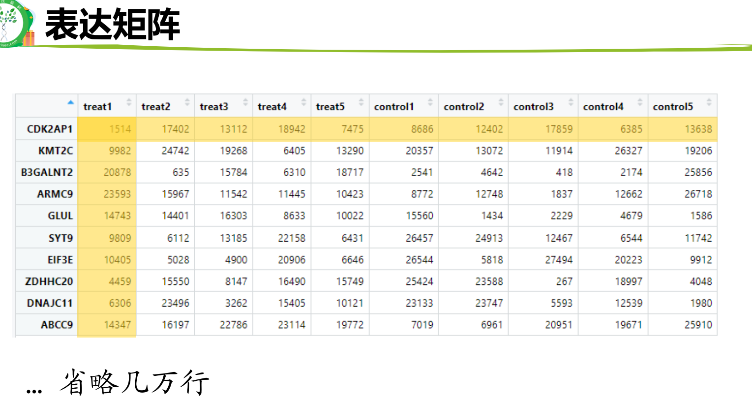 根据表达矩阵,一行是一个基因,一列是一个样本,数值是该个基因在该样本中的表达量。