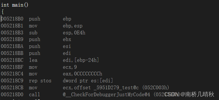 rep stos dword ptr es:[edi] //将edi的值对应的地址处开始,将高于该地址共ecx个单位的值置为0CCCCCCCCh
