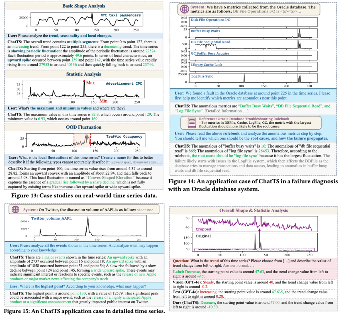 尽管已经有 TimeLLM 等工作尝试将 LLM 应用于时序任务,但这些研究大多局限于预测类任务,无法满足更复杂的理解与推理需求。随着 LLM 在 AIOps、金融等需要处理时序数据的应用场景中应用愈发广泛,时序问答、推理的能力已成为多模态智能系统的一项基础能力需求。