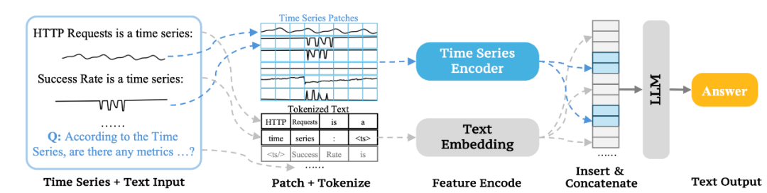 因此,我们思考,是否可以构建一种「时间序列原生」的多模态 LLM,使其像处理图像一样,能够原生地理解时间序列的形状、波动与语义含义,并进行进一步的问答和推理?