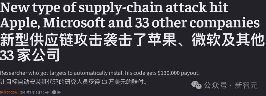 这种攻击方式,也称为「软件包混淆」,在2021年的一次概念验证中首次展示,成功在苹果、微软等巨头公司的网络中执行了伪造代码。