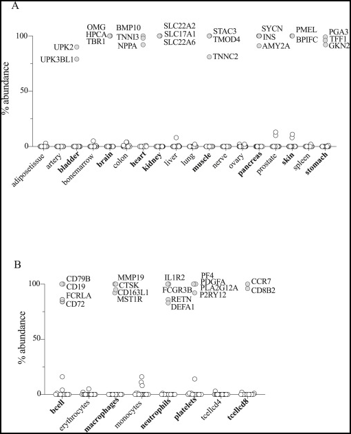 Para_01 DIA-NN(v1.8.1)用于分析组织和血浆的DIA样本。 鉴定结果在1%的假发现率(FDR)下进行了过滤,没有进行蛋白质推断,启用了智能分析,并且允许使用第一次通过后创建的高质量鉴定库重新分析所有样本。 DIA-NN的原始输出被传递给DPKS进行下游分析。 使用DPKS进行了归一化处理,并通过iq算法的实现对蛋白质进行了定量。 Assigning proteins to tissues for each atlas 将蛋白质分配到每个图谱的组织中