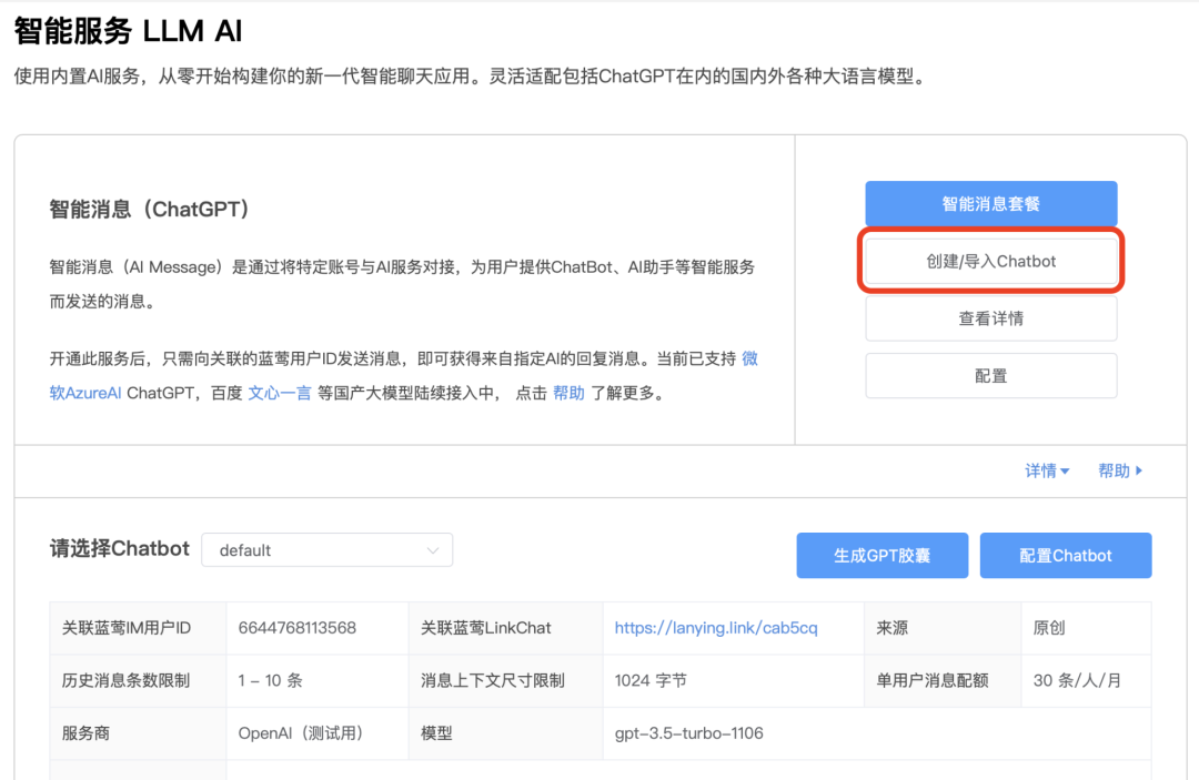 至于如何创建Chatbot,可直接搜索本公众号视频号查看使用指南。
