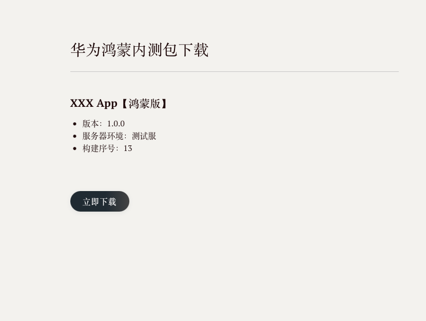 <div id='write' class=''><h1 id='华为鸿蒙内测包下载'><span>华为鸿蒙内测包下载</span></h1><h2 id='XXX App【鸿蒙版】'><span>XXX App【鸿蒙版】</span></h2>