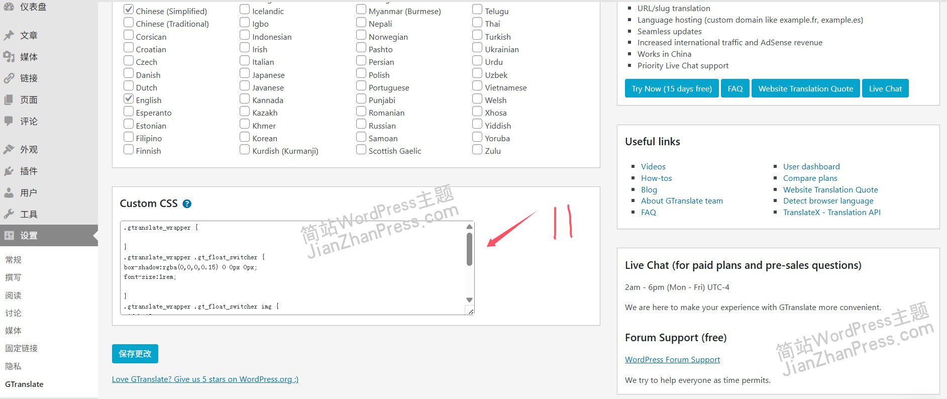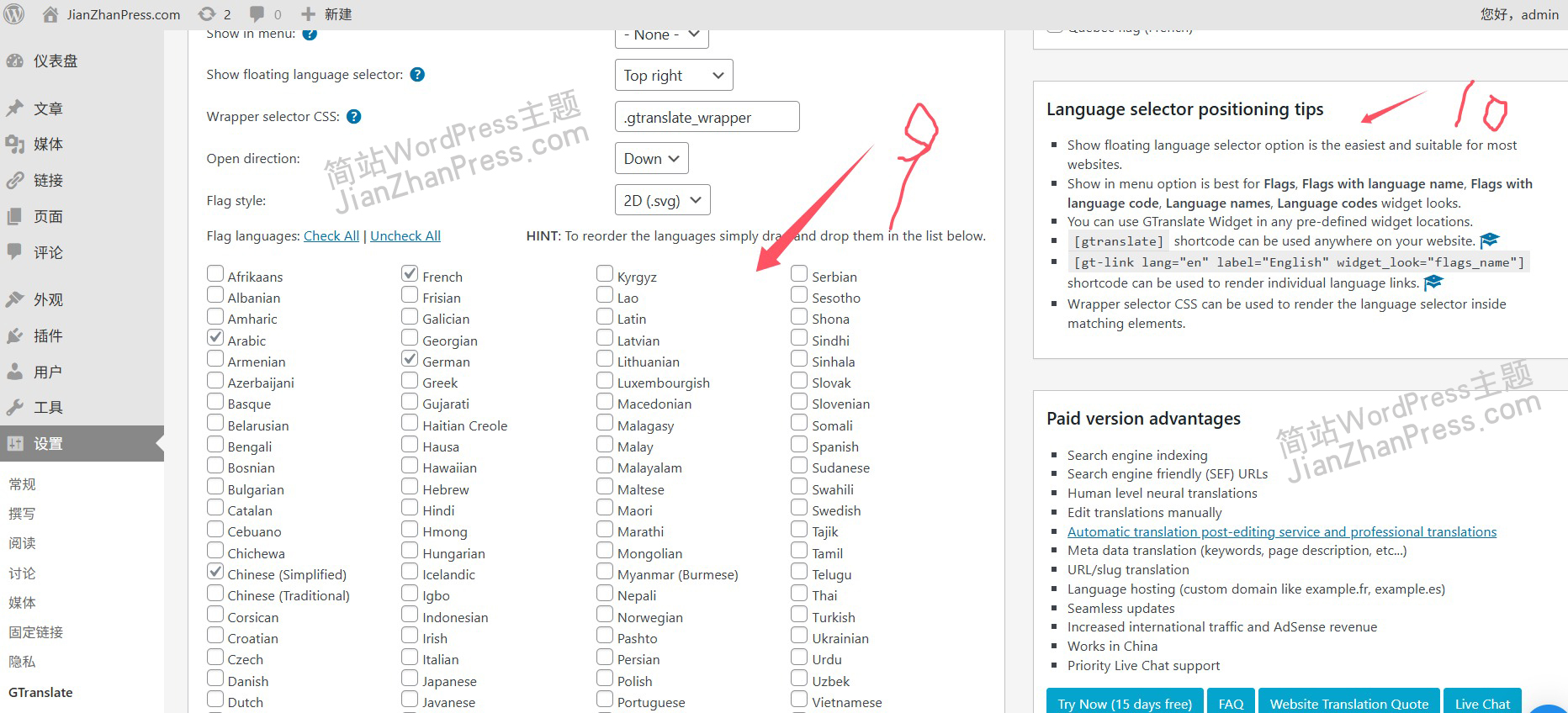 WordPress多语言插件GTranslate的使用方法