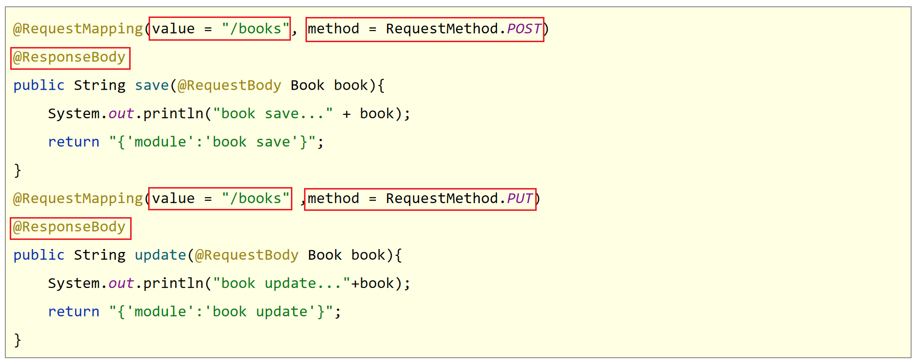 @PutMapping //使用@PutMapping简化Put请求方法对应的映射配置
