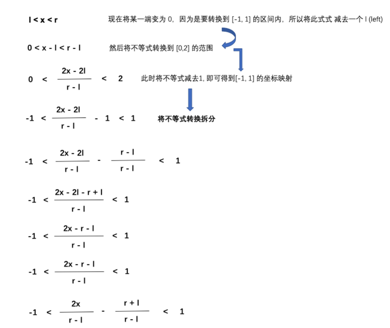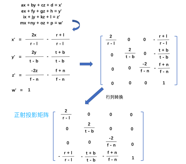 正射投影就是把可视空间内的坐标映射到 x [-1,1], y [-1,1], z [-1,1] 的区间内。