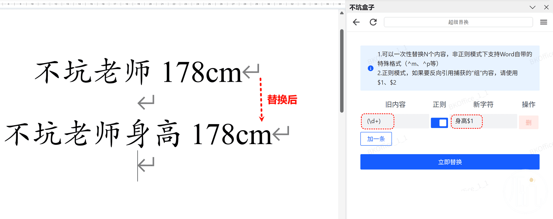 Word中的“超级替换”功能,在正则模式下,可以反向引用()