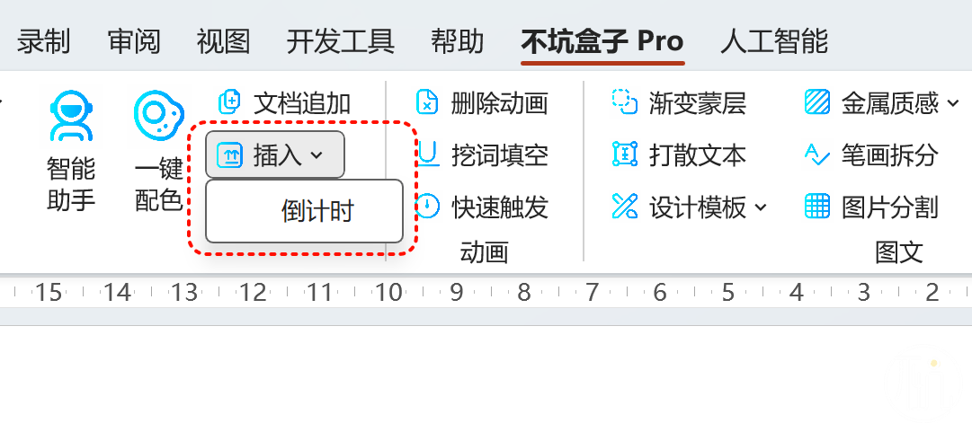 在新版本中,新增了“插入”-“倒计时”,这个倒计时是嵌入到PPT的页面中的。