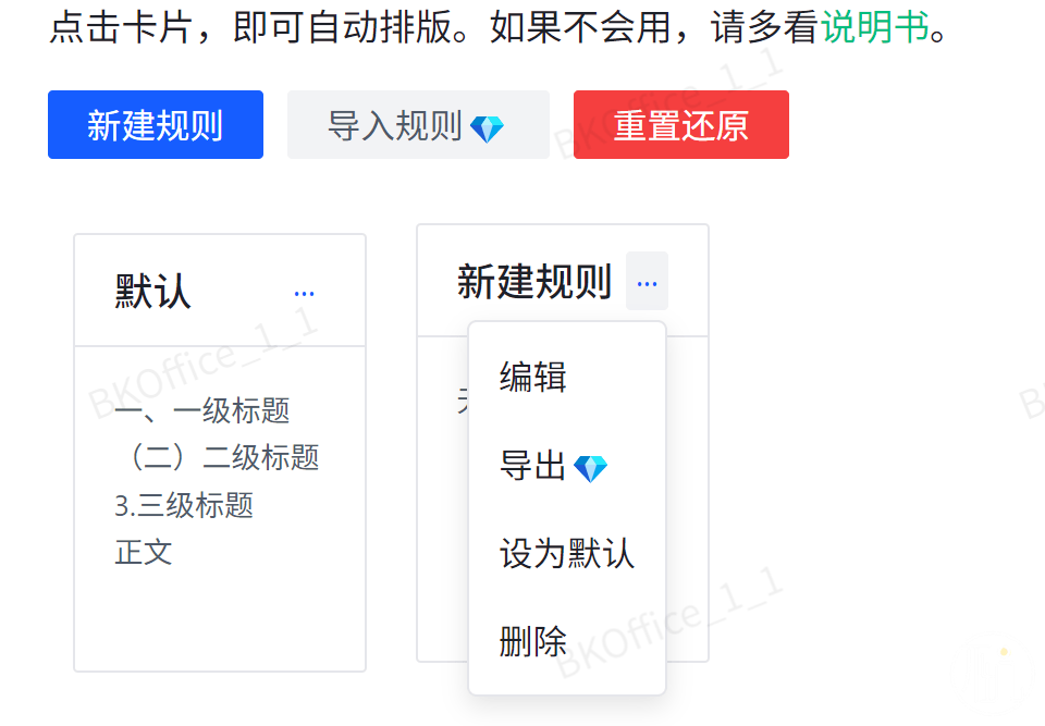 自动排版的规则,可以导入和导出了,也可以把自己新增的规则设置为默认规则了。
