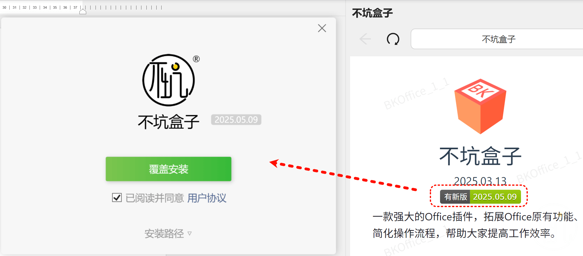 如果你已经是不坑盒子的老用户,直接点击“关于”,点击版本号,即可弹出安装界面,点击更新即可。