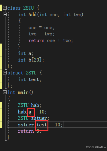 hab.a = 10;//会报错