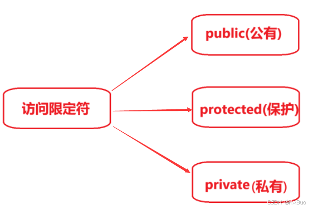 };C++中类的限定符有三类,如下所示:
