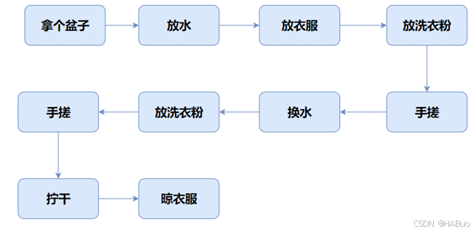 面向过程事实上强调完成一个人物整体的一个流程也即是逻辑,例如我们洗衣服