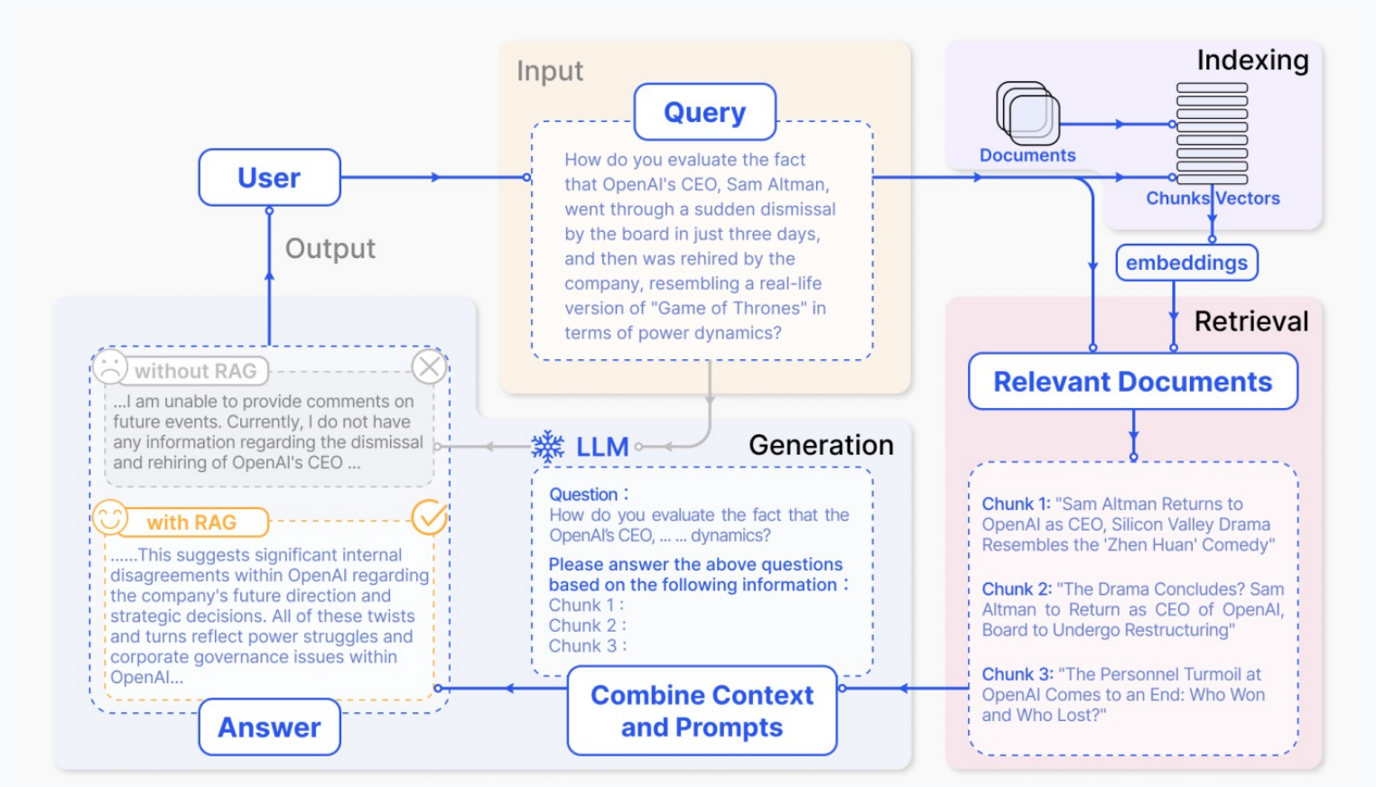 为LLM提供来自外部知识源的额外信息的概念。这允许它们生成更准确和有上下文的答案,同时减少幻觉