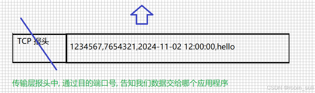 步骤四传输层: 传输层拿到数据后,根据TCP协议进行解析,把TCP报头去掉,剩下的载荷向上传给应用层