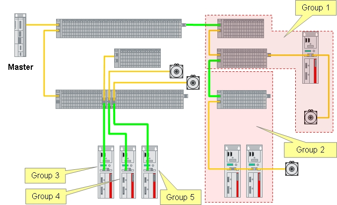 值得注意的是,热连接功能并不要求从站具备特殊的EtherCAT特性。事实上,任何EtherCAT从站均可成为热连接组(HC组)的一部分。为保证每个HC组的唯一性和可识别性,可使用DIP开关来设定特殊的从站地址,该地址可以存储于站别名寄存器或某些从站内存地址中,EtherCAT主站均可识别并支持这两种方式。此外,该应用程序还允许主站在系统初始化时写入站名地址。