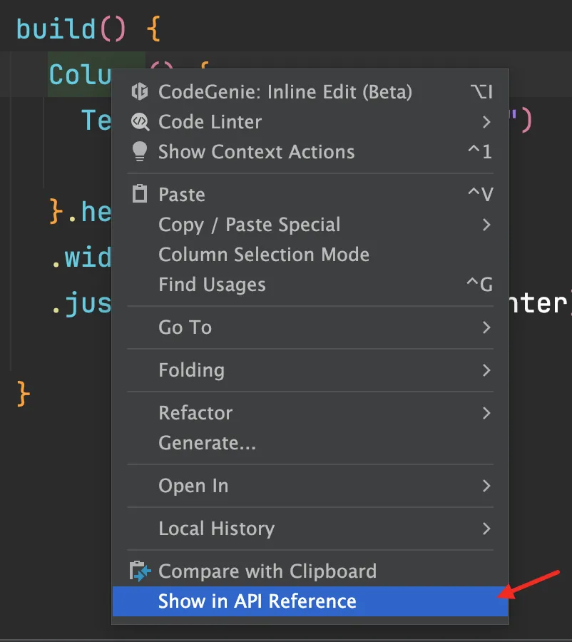 这个功能,想必大家都比较熟悉吧,它可以一键直达Api,帮助你快速的了解此组件或属性的相关介绍,使用方式也是非常的简单,在你需要了解的组件或属性之上,直接右键,选择Show in APi Reference选项即可。