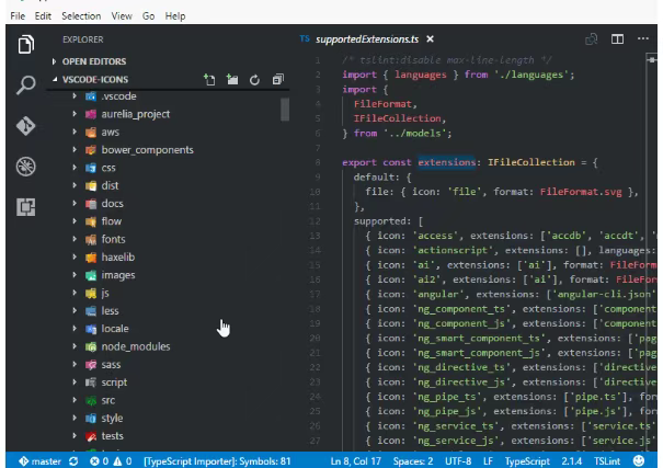 vscode-icons不仅能够给文件夹、文件添加上舒适的图标,而且可以自动检测项目,根据项目不同功能配上不同图标,例如,git、Markdown、配置项、工具类等。