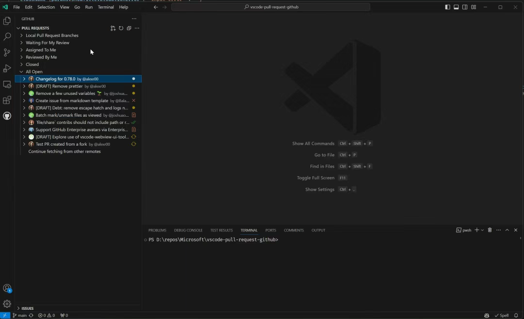 能够直接在 VS Code 中审查和管理您的 GitHub 拉取请求和问题。