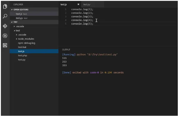 运行多种语言的代码段或代码文件C, C++, Java, JavaScript, PHP, Python, Perl, Perl 6, Ruby, Go, Lua, Groovy, PowerShell, BAT/CMD, BASH/SH, F# Script, F# (.NET Core), C# Script, C# (.NET Core), VBScript, TypeScript, CoffeeScript, Scala, Swift, Julia, Crystal, OCaml Script, R, AppleScript, Elixir, Visual Basic .NET, Clojure, Haxe, Objective-C, Rust, Racket, Scheme, AutoHotkey, AutoIt, Kotlin, Dart, Free Pascal, Haskell, Nim, D, Lisp, Kit, V, SCSS, Sass, CUDA,和自定义命令。