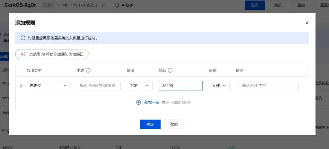 同时,请根据安装时提示的端口号(例如:30409,请以您实际显示的端口为准),前往您的服务器服务商后台开放该端口,否则无法正常访问面板。