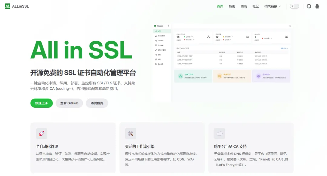 告别这场周而复始的运维噩梦,ALLinSSL面板应运而生,它不仅仅是一个免费工具,更是您全自动化的SSL证书生命周期管家。