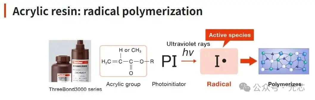 丙烯酸树脂经历自由基聚合,这是一种由紫外光引发的链反应,激活光引发剂。该反应进行迅速,使丙烯酸基紫外树脂适用于高速生产线。它们通常具有优异的柔韧性,对各种基材的良好附着力和低收缩率,但可能对表面的氧阻聚敏感,这会影响表面固化。