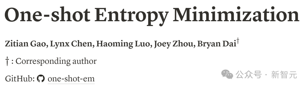 论文链接:https://www.notion.so/One-shot-Entropy-Minimization-202606db813b80639773f850f39246a5