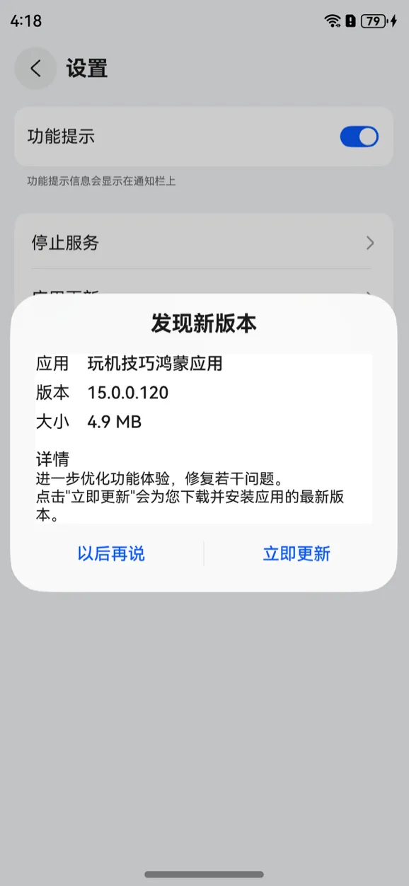 总结就是,在鸿蒙中更新应用,是无法做到直接下载更新的,而是必须到应用市场进行更新。