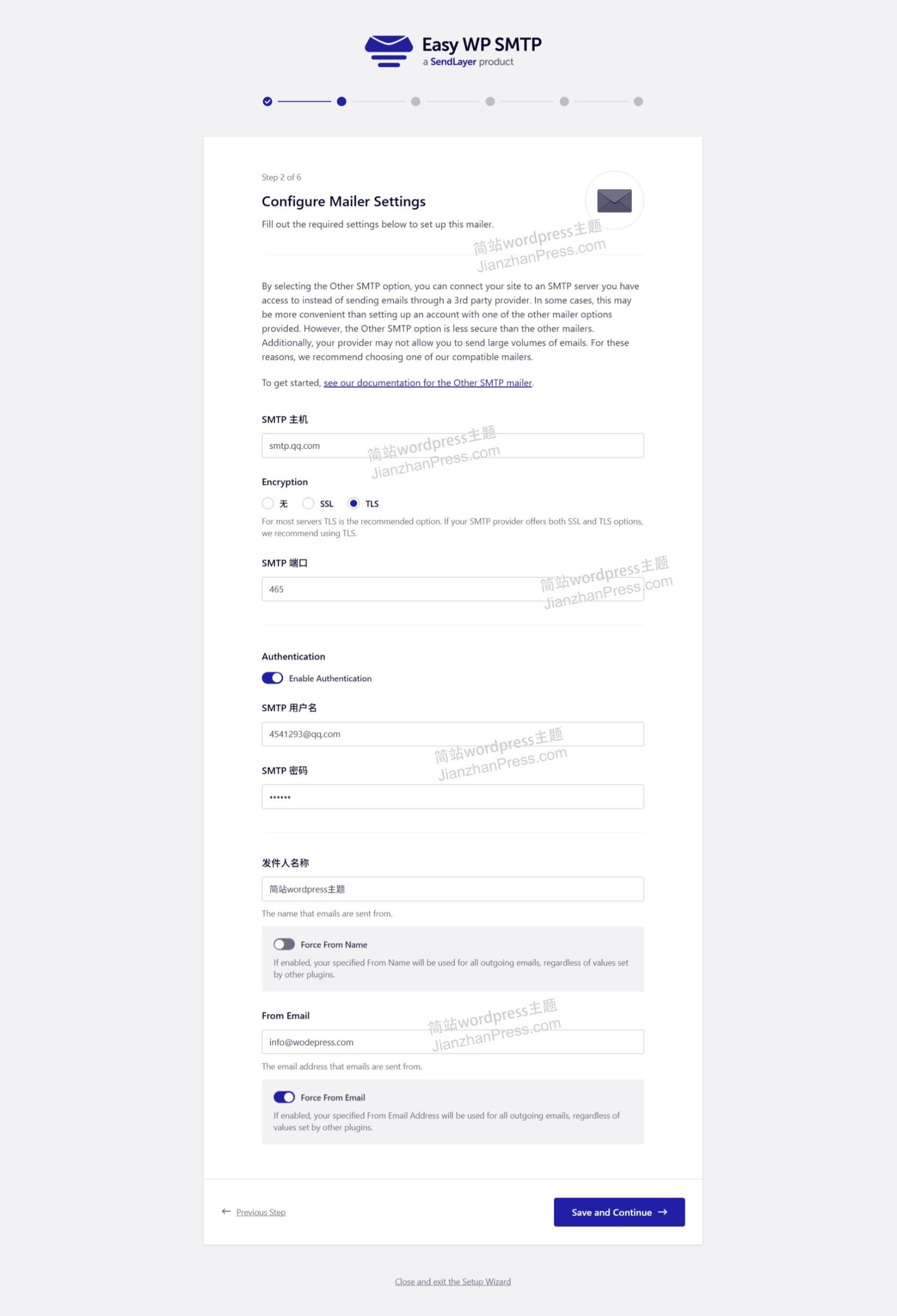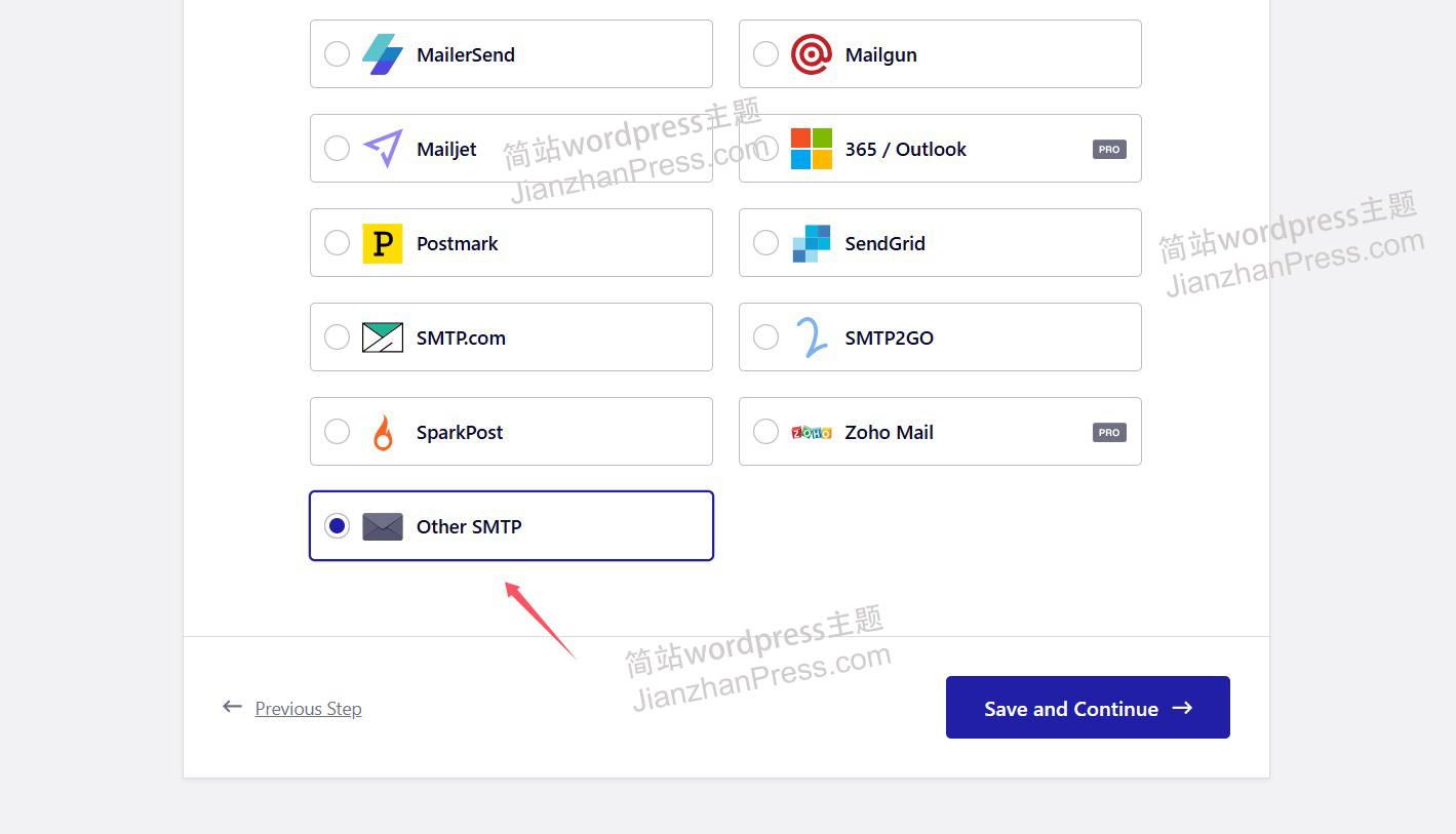 3、在出现的页面中选择”Other SMTP“,然后点”Save and Continue“,进入到下一步。