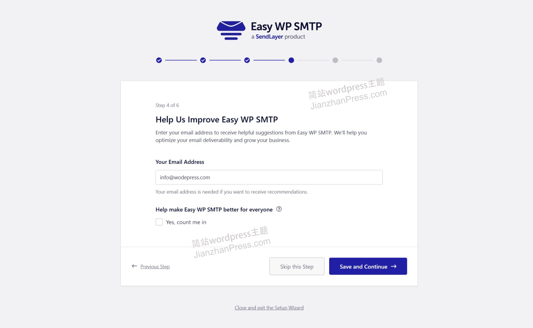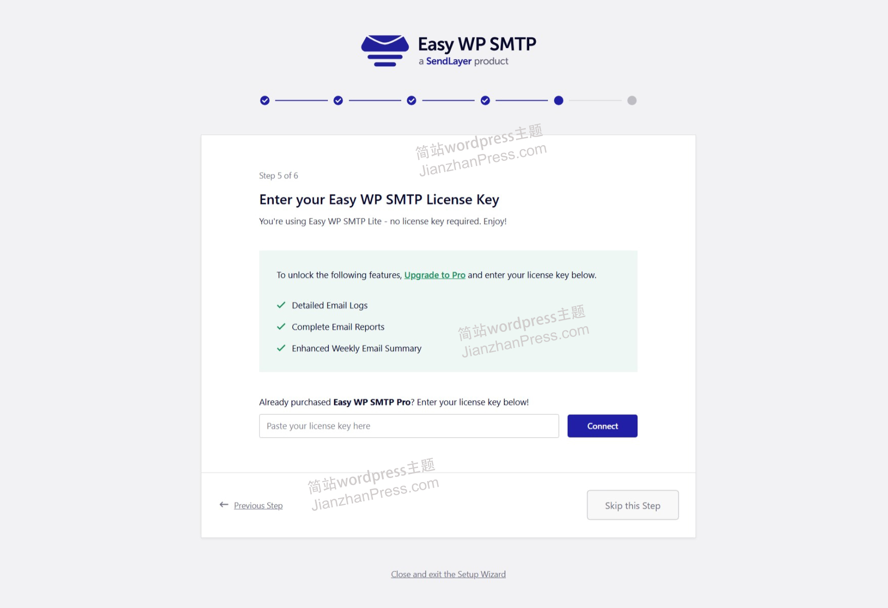 7、如果使用的是Easy WP SMTP付费版,录入相应的License Key信息。如果使用的是Easy WP SMTP的免费版,点“Skip this Step”跳过即可。