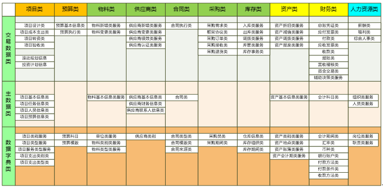 数据服务:更多的是从数据CRUD分析中识别出来的服务,其中既包括了主数据,也包括了共享动态数据。一个服务如果更多是事后非实时的共享数据传递或数据查询,则更多的是数据服务。从这个层面来说业务服务和数据服务本身存在一些较难界定清楚的地方。也有一些方法是单独仅仅将主数据和共享数据中心提供出来的分析规划为数据服务,其它全部为业务服务。