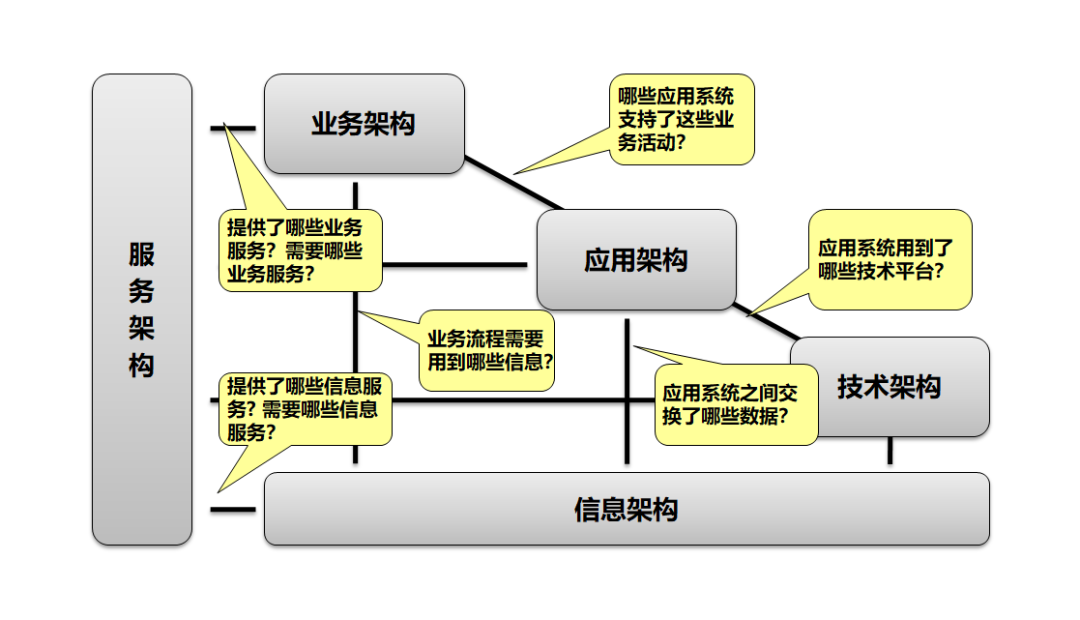 企业架构能够很好地衔接业务和 IT,为业务人员和技术人员提供一套共同的沟通词汇表。在企业中,业务人员和技术人员往往存在着沟通障碍,业务人员关注的是业务需求和业务流程,而技术人员关注的是技术实现和系统架构。